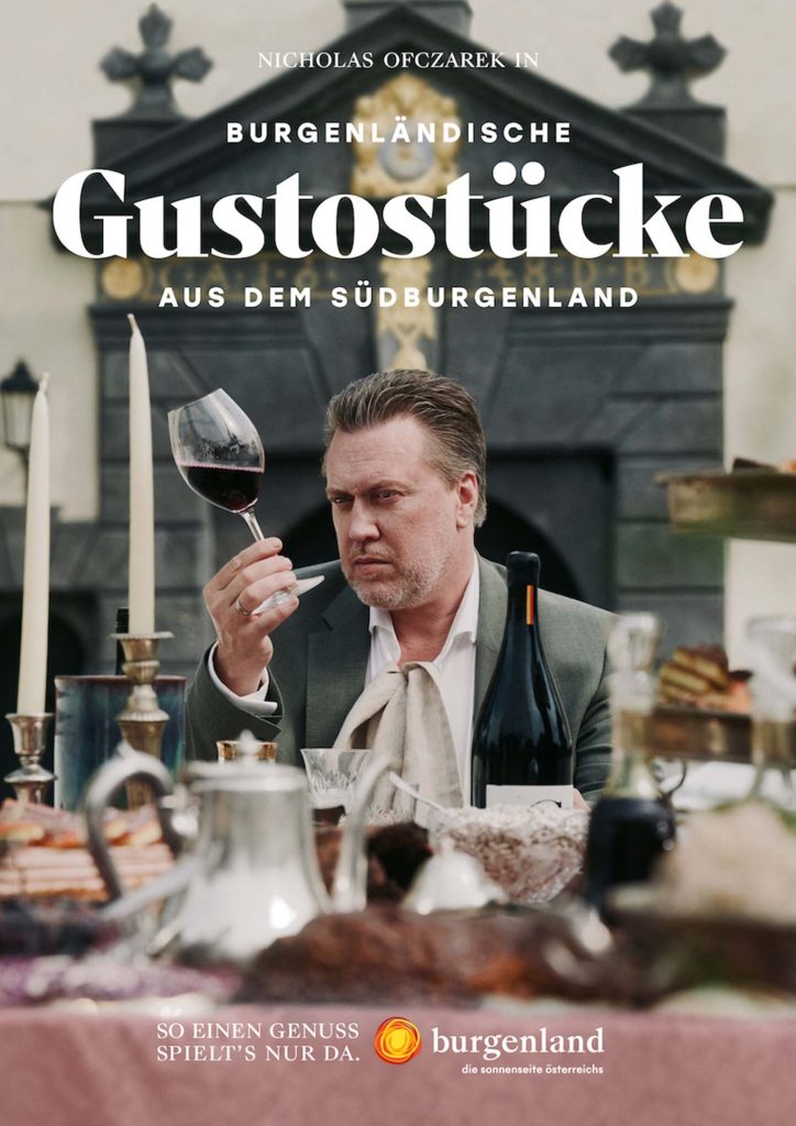 With his exceptional screen presence, Ofczarek turns Burgenland into a stage where he performs almost like in an outdoor theater. All it takes for this is a beautiful natural backdrop in the North, Central, and Southern Burgenland. Embedded in all four films is a lavishly set table with culinary delights and the finest wines from each region, while Nicholas uses his acting skills to explore various genres – whether with luxurious gentleness, profound longing, or fervent passion, he embraces the diverse expressions of enjoyment. And for all these facets there are abundant pleasures for the palate to be found. Because “Taste like this only stars in Burgenland!”
