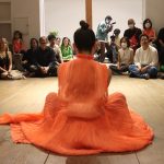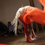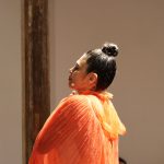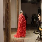 Delivering a selection of original text accompanied by live and recorded music and donning an elaborate costume doubling as her set, Cuenca’s performance bears with it multiple characters that shift between an activist, a preacher, a sorcerer, a queen, queer, and a wonder woman. The elaborate and intricate costumes created by Puipia consisting of four layers, serve as markers in the identity shifts. As a new character is revealed, Cuenca will be stripping them off like the Russian Babushka dolls.