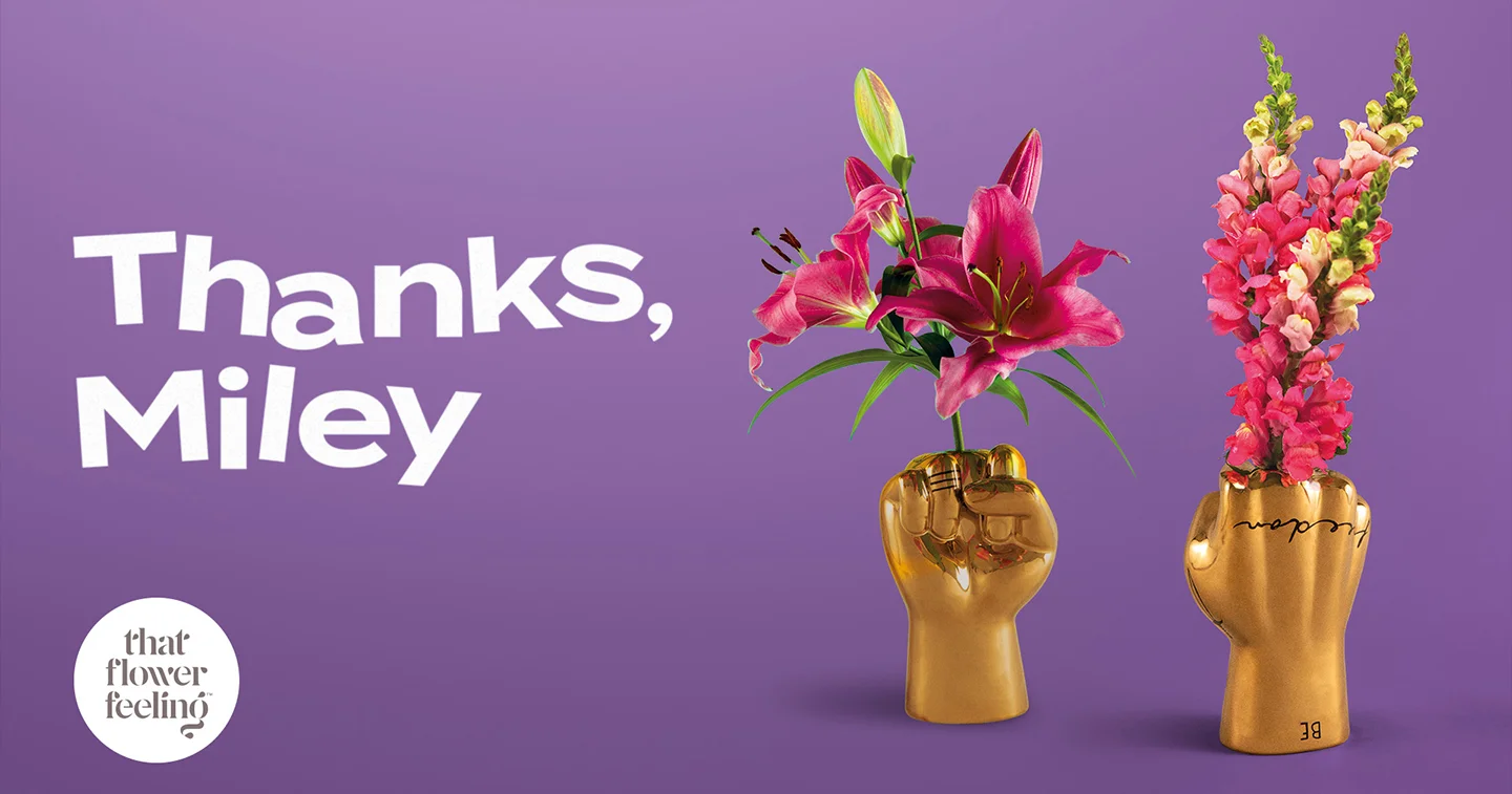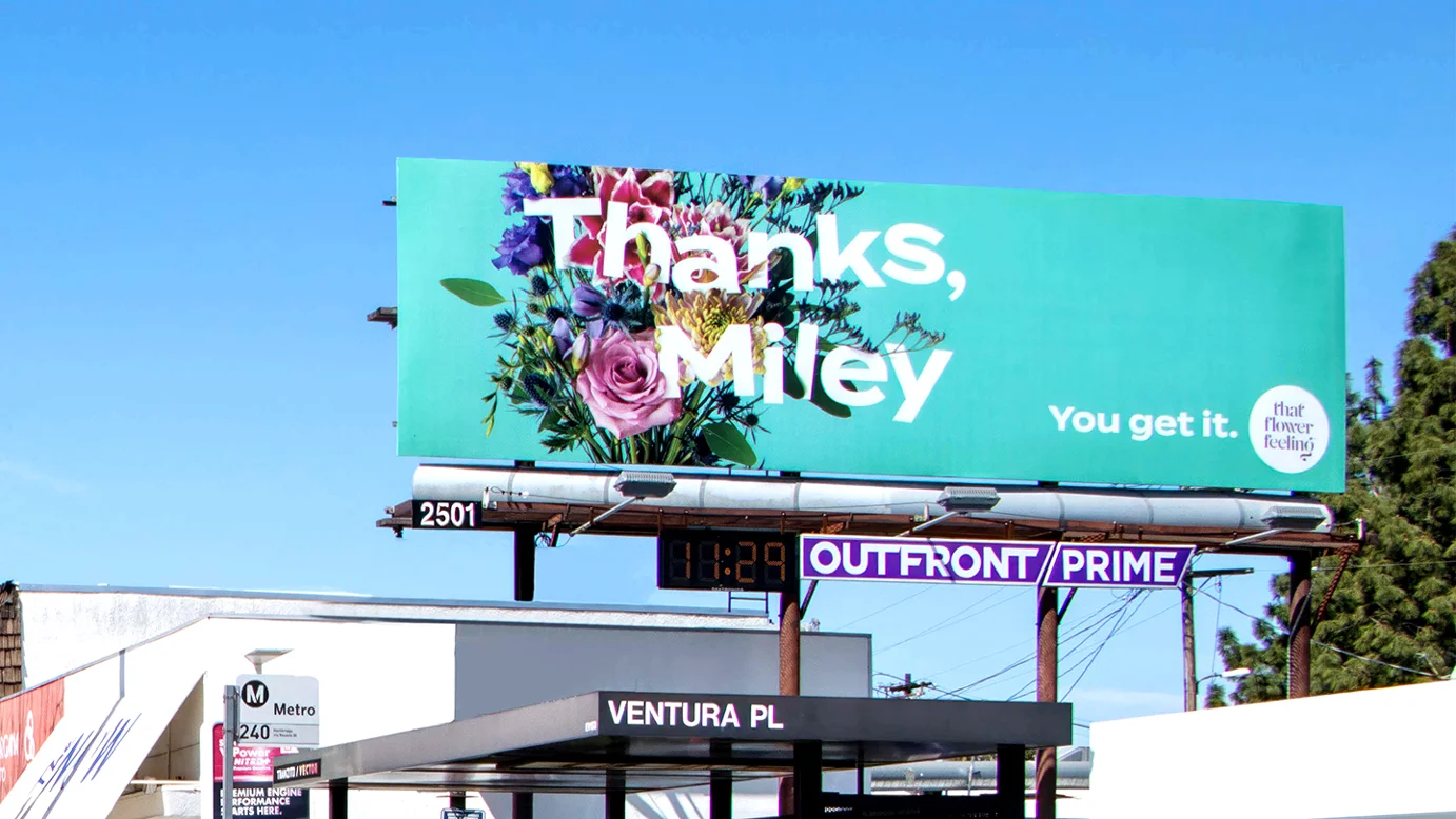 Steve Dionne, Executive Director at That Flower Feeling, said, “When one of the world’s most famous pop stars sings about what your business stands for, you have to join the conversation. By thanking Miley on a larger-than-life scale, we’re able to stoke the cultural fire and make sure That Flower Feeling appreciates its newest, unofficial ambassador.”