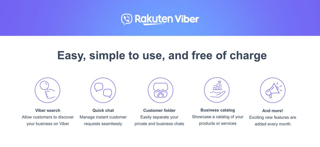Viber’s newest features include a public business profile that businesses can easily set up, 1-on-1 customer chats, discoverability through Viber search, dedicated chat folders where businesses can separate customer messages from personal messages, and a product catalog where customers can explore and inquire about the businesses’ items and other services.