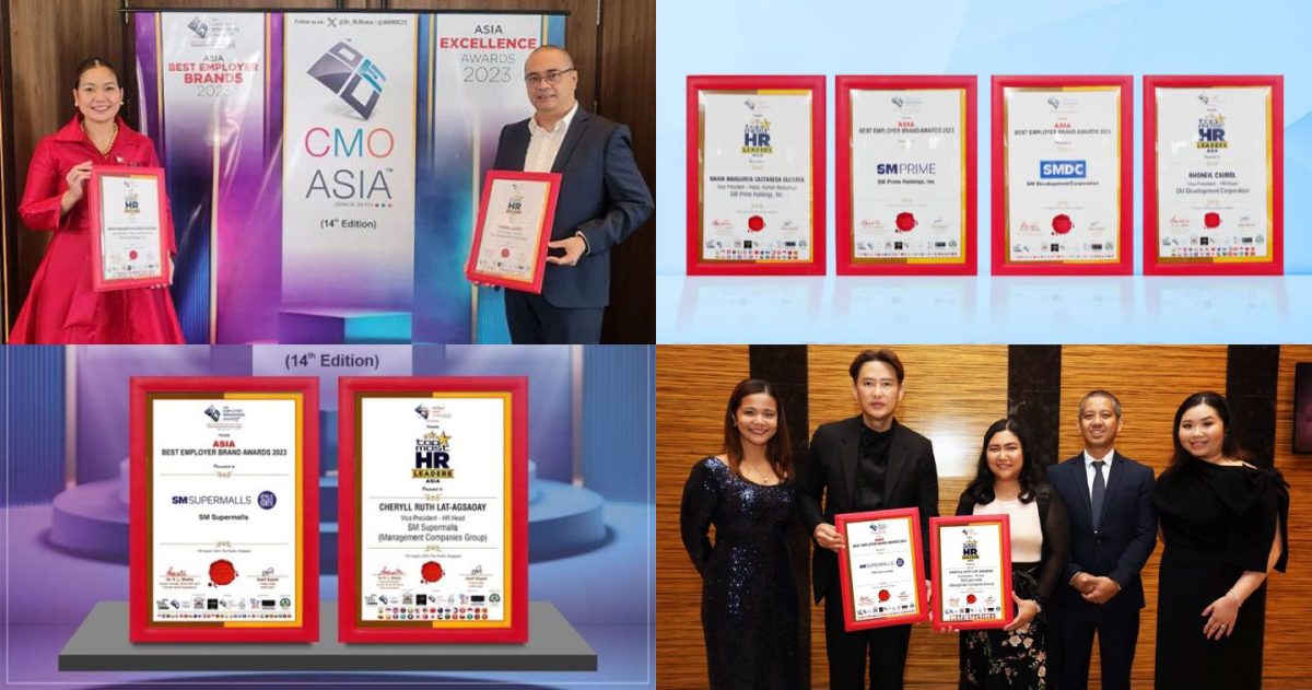 MANILA, PHILIPPINES — Awarded among Asia’s Best Employer Brands 2023 are SM Prime Holdings, Inc., SM Supermalls, and SM Development Corporation (SMDC). The spotlight was also cast on SM Prime’s HR Leaders, Maria Margarita C. Guevara (Vice President – HR, SMPHI), Cheryll Ruth L. Agsaoay (Vice President – HR, SM Supermalls), and Rhoneil E. Caimol (Vice President – HR, SMDC) as they were also awarded among the Top Most HR Leaders in Asia.
