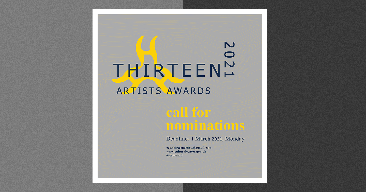 MANILA, PHILIPPINES — The Cultural Center of the Philippines, through its Visual Arts and Museum Division is now accepting nominations for the 2021 Thirteen Artists Awards.