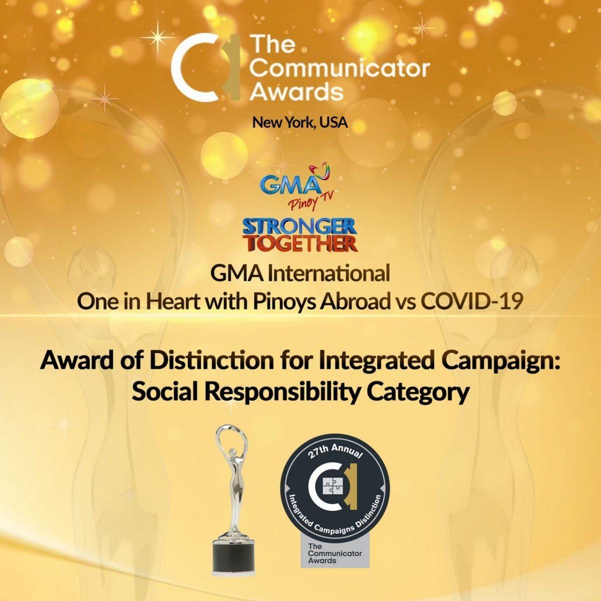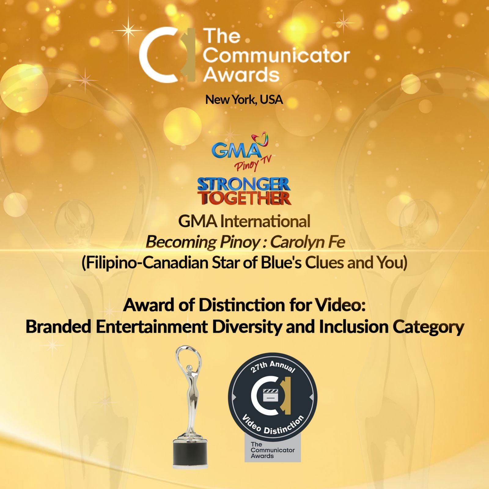 “We are grateful to the Academy of Interactive and Visual Arts (AIVA) for giving GMA Pinoy TV this welcome recognition at this year’s Communicator Awards. We, at GMA Pinoy TV, share this victory with our Kapuso abroad as their inspiring stories truly serve as our driving force to create meaningful content that would likewise empower Filipinos all over the world as we are indeed #StrongerTogether no matter the adversity,” said GMA Network First Vice President and Head of International Operations Joseph T. Francia.