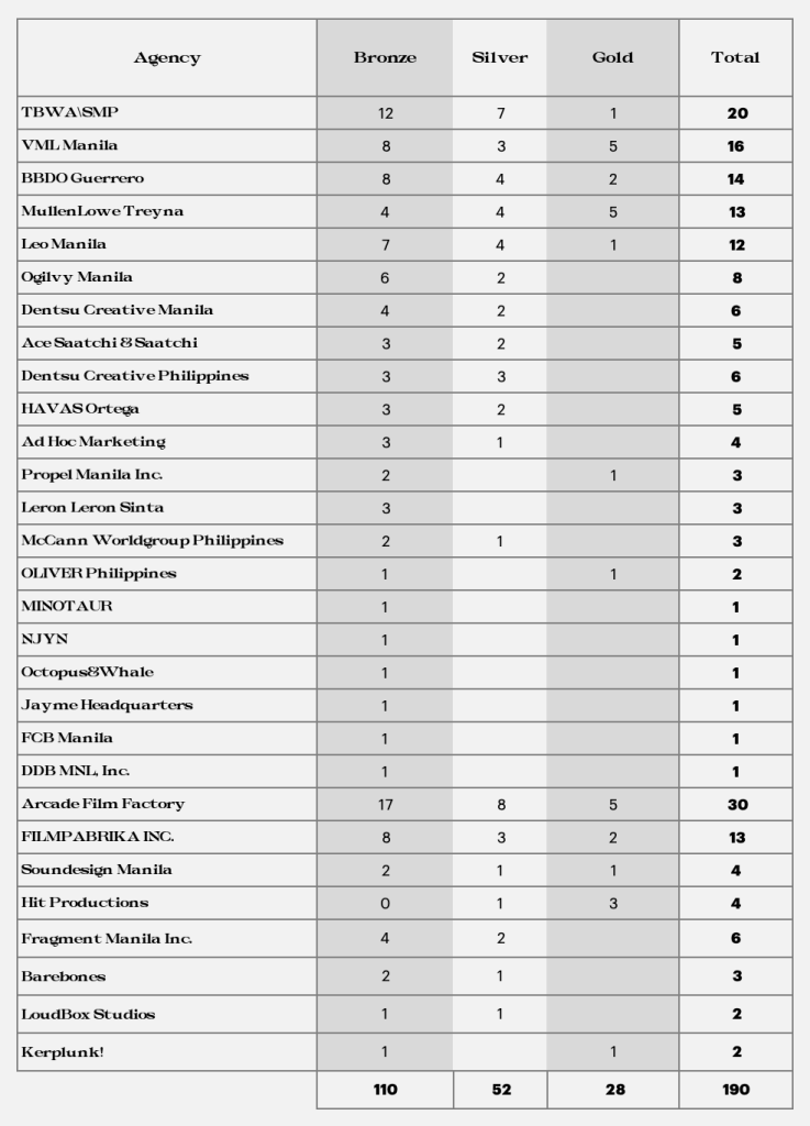 Meanwhile, in Young Lions, Bronze went to PublicisJimenezBasic’s Catch Madrid and Josh Laxamana, Silver to Woo’s Irijah De Leon and Jake Sans Relano, and Gold to VML Manila’s Hennina Salud and John Cedric Peji, who will be representing the country at the annual Young Lions competition in Cannes.