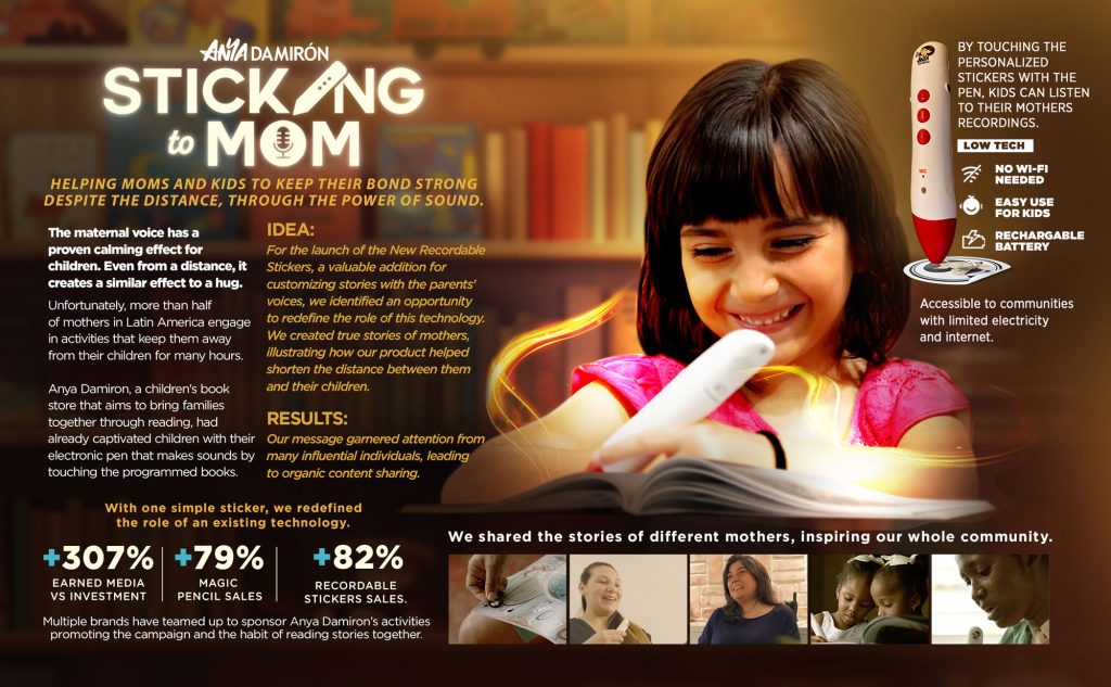 How do you connect families without needing high technology and costs, and still create memorable moments? McCann Santo Domingo achieved this with an emotional idea that unites families through reading by means of technology. The campaign, inspired by real stories of mothers who work remotely, showed how it is possible to be close even when far away and the importance of the connection between parents and children.