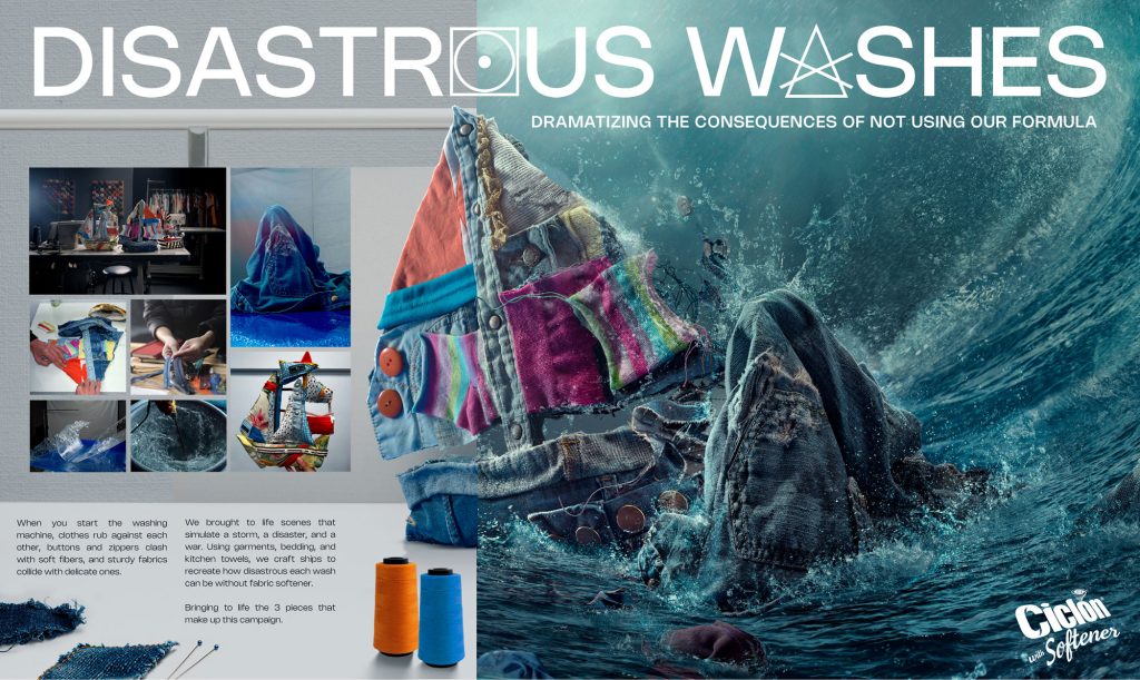 This entry is a beautifully crafted idea that tells the epic story of how thousands of clothes go through washing machines daily. McCann Ecuador gave life to scenes that simulate a storm, a shipwreck, and a war. Using garments, bed linen, and kitchen towels, the team created boats to recreate how disastrous every wash without fabric softener can be.