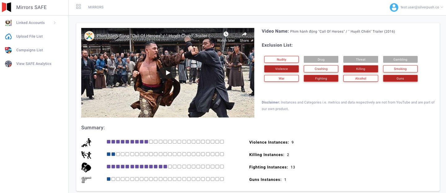 Mirrors Safe’s advanced algorithm uses five parameters — namely, engagement, safety, influence, relevance, and momentum — to calculate a comprehensive brand suitability score, that measures not only the safety and suitability of the content, but also of the page and the channel.
