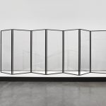 Also harnessing the result of controlled chance or accidents, the large-scale sculpture Folds in shade (also light and shade) 7 leaves (2020), a multi-sectioned byobu (Japanese folding screen), features bronze framed panels of glass with a delicate tracery of fine cracks, like a continuous calligraphic landscape that runs across each of its seven parts. The intimation of its form – as if it might have been cracked by a particularly high-pitched sound – characterises another sculpture on view; two large gongs are played at regular intervals, layering the exhibition with oscillating, resonant sound. Creating a vibrating, near-hallucinatory optical and aural experience, Evans’s exhibition questions the authority of perception in order to suggest alternate paths of understanding, beyond the boundaries of communication, rationality and vision.