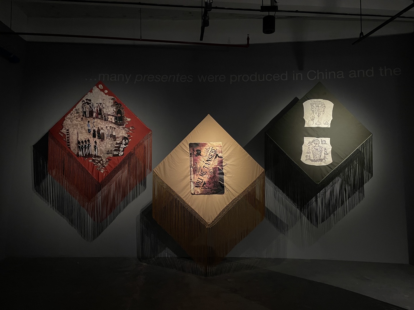 Using the Manila Galleon trade as framework for the exhibition, Muntadas developed three projects based on goods that were originally part of this commercial circuit — the mantón de Manila or “Manila Shawl” which was originally made in China then travelled to Manila, and later adapted and appropriated to the Spanish culture; coins and medallions, and ceramic tradeware from Sevilla. Contemporary versions of these goods, which Muntadas refers to as presentes, act as repositories of memories; they are intended as metaphors for historical, political, social, and cultural narratives relevant to Philippine society.