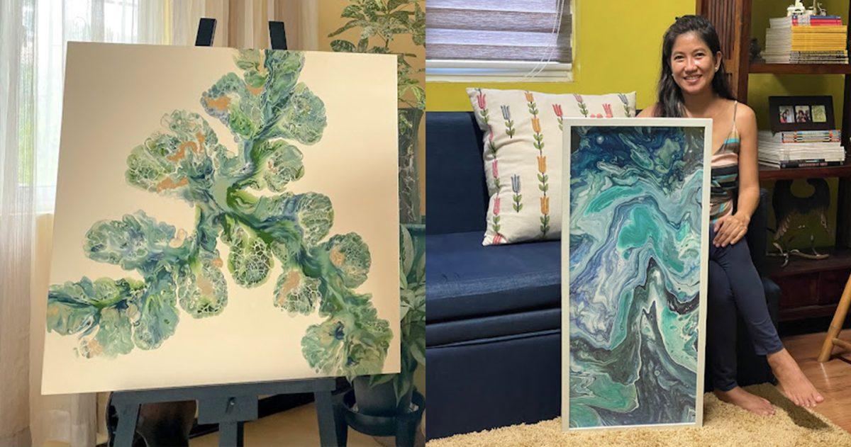 Never in all those years did Leslie ever think she would be the one in front of a blank canvas, paint in hand, ready to create art. But she was a firm believer that it’s never too late to chase your dreams. One evening, after a hard’s day work as a marketing consultant, she and her daughter stumbled upon the mesmerizing style of fluid art painting through a Youtube video. Enamored by the technique, how the colors flowed and danced together, and with a growing sense of creativity, she decided to try her hand at the medium. So, at the lovely age of 48-years-old, Leslie embarked on her art journey.