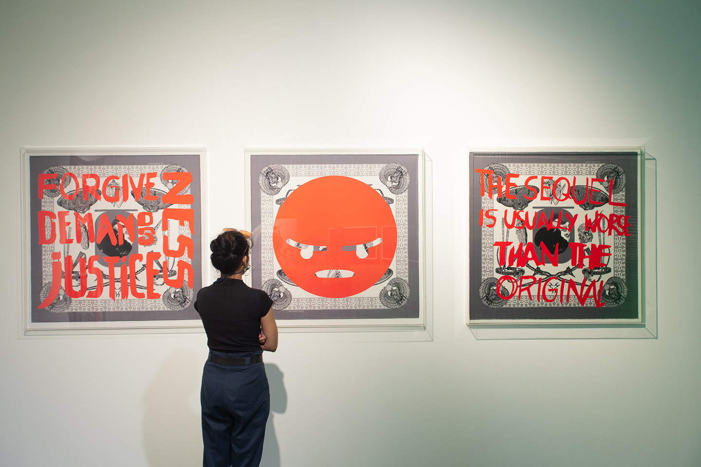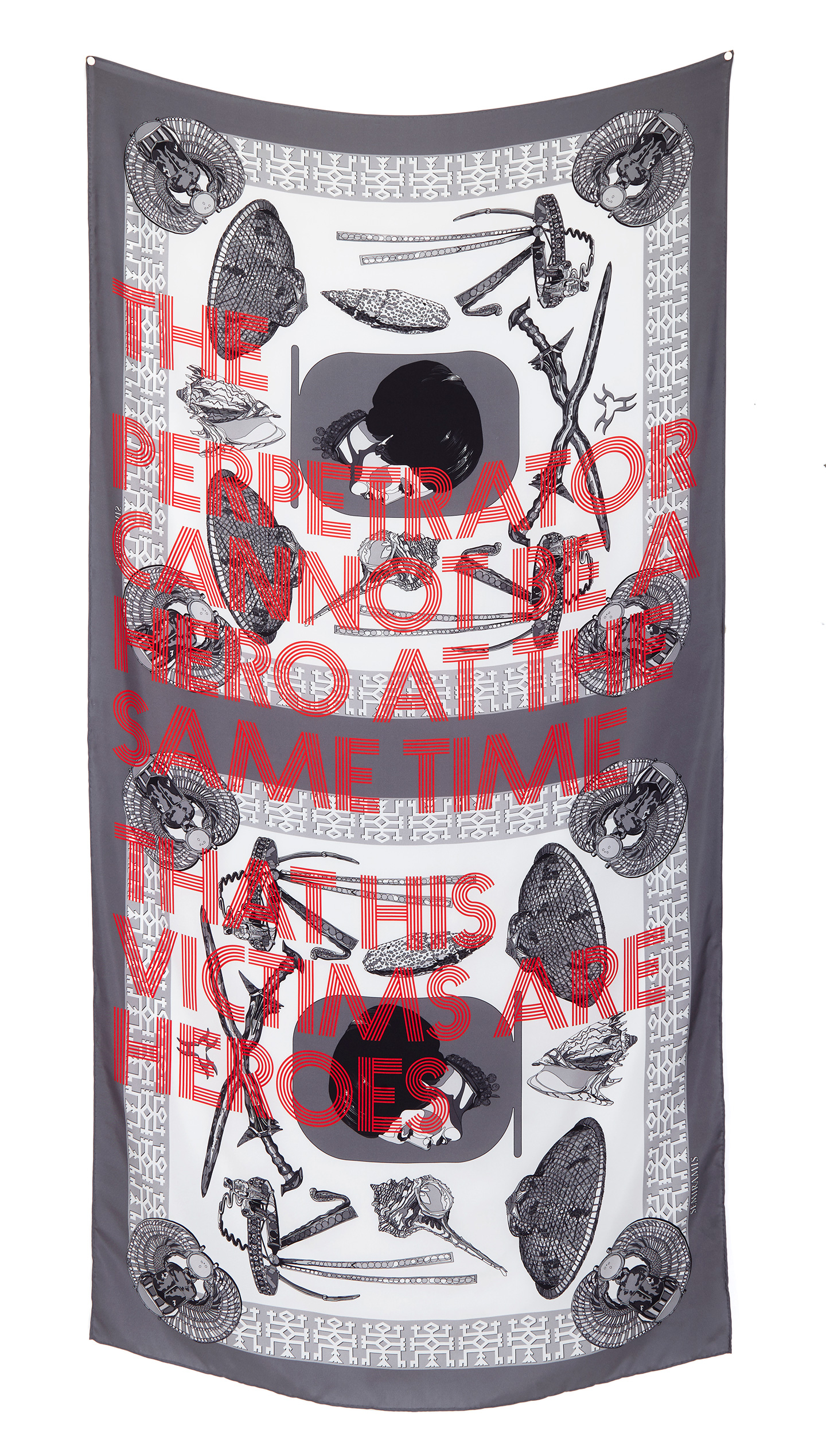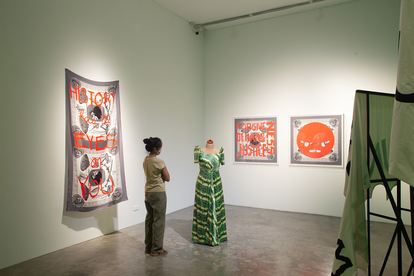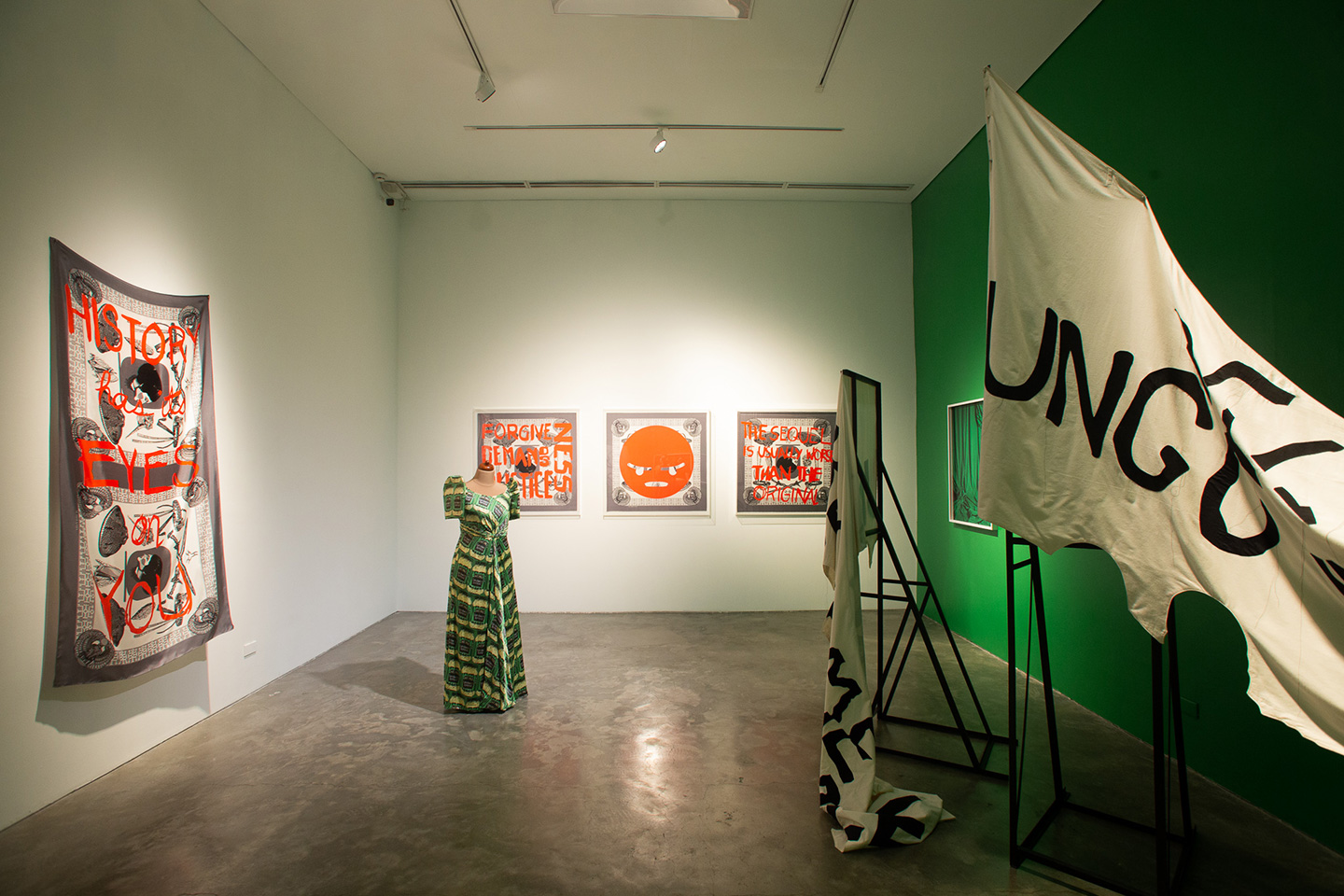 MANILA, PHILIPPINES – Silverlens is proud to present the two-artist exhibition, Crime and Ornament, featuring Pio Abad and Stephanie Syjuco. Re-engaging and re-energizing previous works to confront the urgency of the moment, the artists materialize the ontology of protest, recalibrating how text, image, and even the seeming impersonality of the chroma key may be activated to prompt oppositional relationships, revolutionary impulses, counter-narratives.