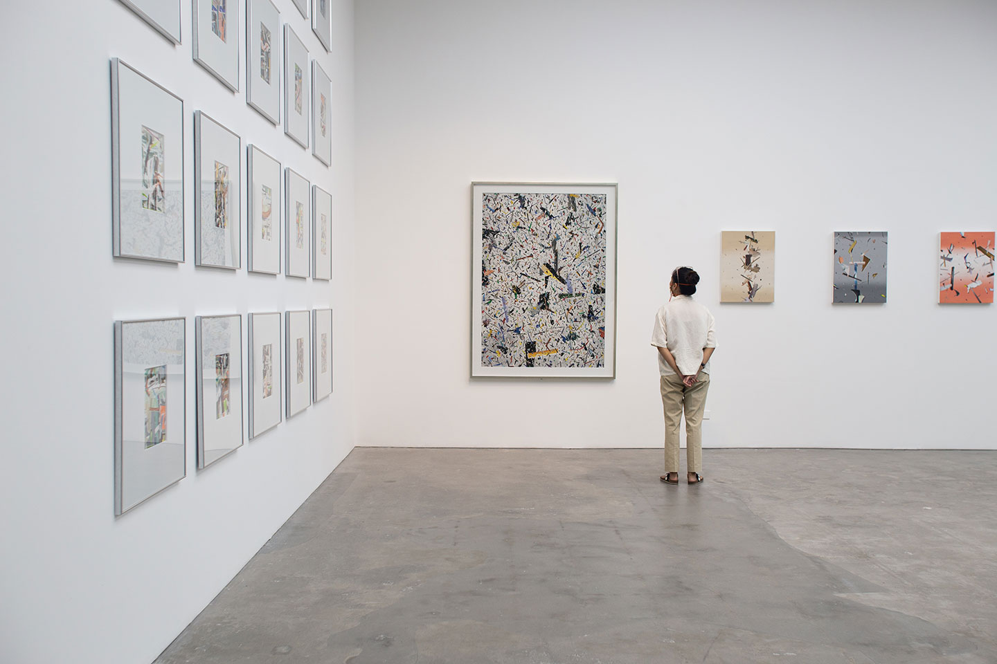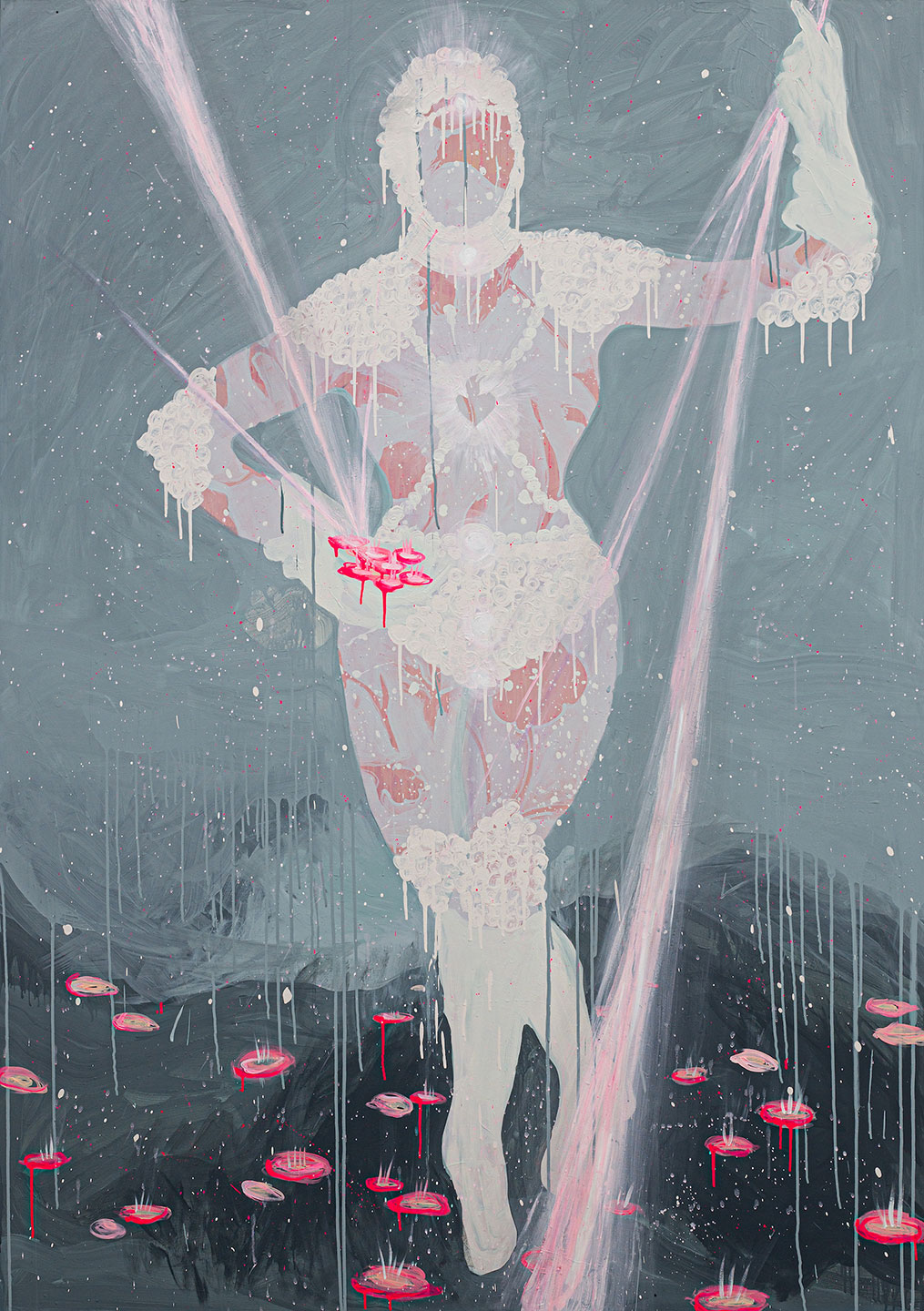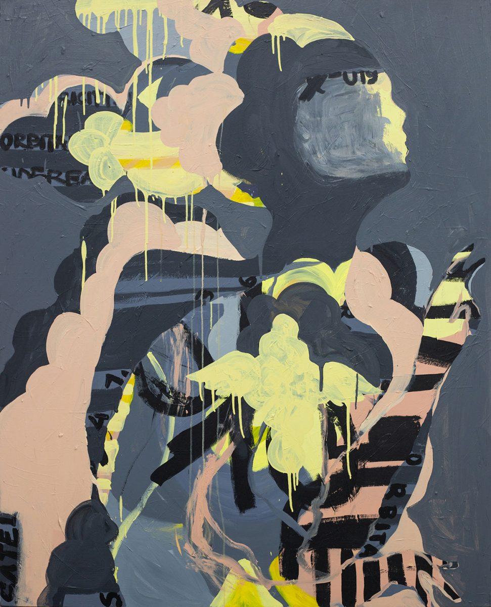 Chati Coronel (b. 1970, Manila, Philippines; lives and works in Toronto, Canada) has been consistently evolving her painting practice for twenty-eight years and in that time, she has developed a singular artistic voice. Her distinct painting methodology, which she refers to as ‘Figurative Spatialism’ is a process by which negative space is painted over completed layers of text and abstract gestures until a silhouette is enclosed. This leaves her paintings’ subjects, often human figures empty to expose the abstract layers below. By effectively omitting the usual visual cues that point to race, age, or personality, Coronel chooses instead to give her human forms an inner world, a human universality. Coronel is represented by Silverlens Galleries and has exhibited her work in Manila, Los Angeles, Florence, Singapore, and most recently, Art Basel Hong Kong.