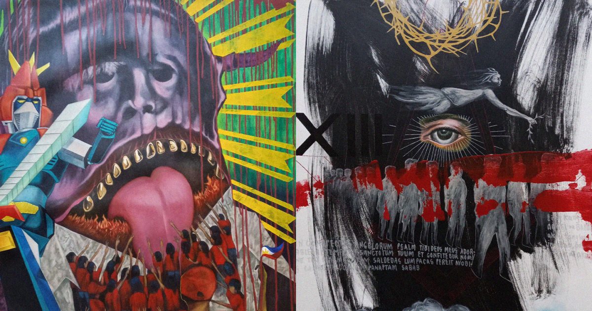 In his painting exhibit, Bisa artist and University of the Philippines Fine Arts professor and painter Marco Ruben Malto II examines the efficacy, influence, power, or strength of various forms of faith. This is not the first time Malto has featured manifestations of the Filipino faith in his works. Faith and the beliefs that they represent using the enigmatic anting-anting elements is a recurring theme in the artist’s works, alongside his suggestive narratives referencing popular images to reflect on current issues dominating the nation. The symbols found in anting-antings can be traced to hybrid beliefs combining Roman-Judeo-Christian religion and Filipino folk beliefs in the Bathala. Just as each element in a logo design is strategically decided to achieve desired results, the symbols etched in the amulets are meticulously composed in order to heal, protect, and strengthen the faithful wearer. In Bisa, the artist showcases how every text in pidgin Latin deliberately inscribed in his works is interplayed with imageries to put to power what many Filipinos consider their talisman.