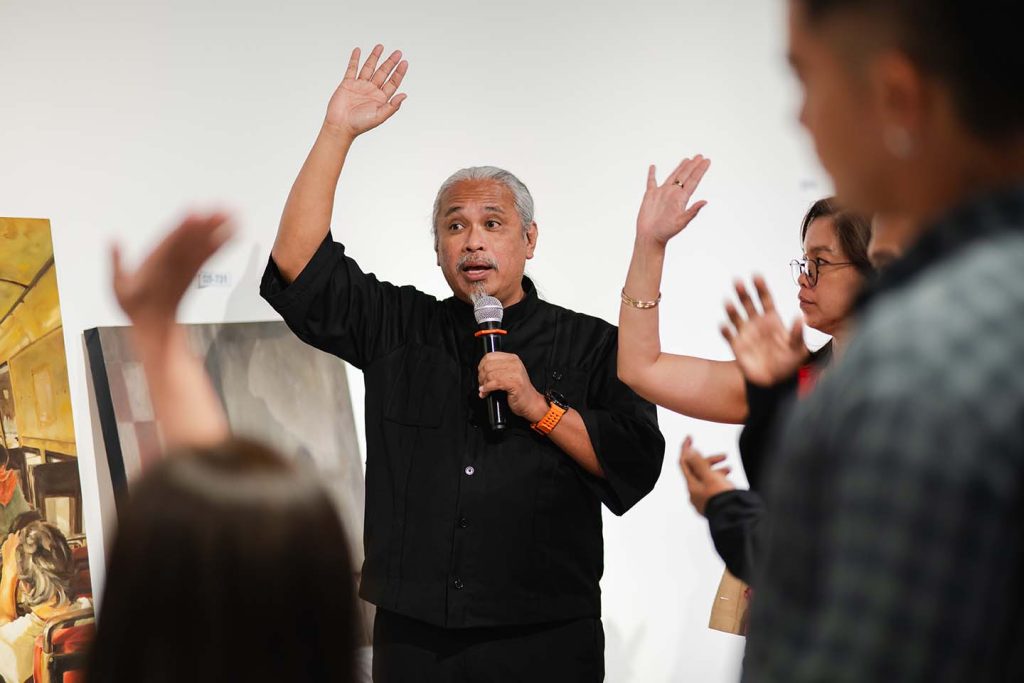 At the exhibition launch, Mixed Media Grand Awardee Jao Eugene S. Pelaez presented his work Tulad ng Isang Halaman na Minsan Nanirahan (Like a Plant That Once Lived) to distinguished guests, including broadcast journalist Karen Davila and Ambassador of Japan Endo Kazuya.