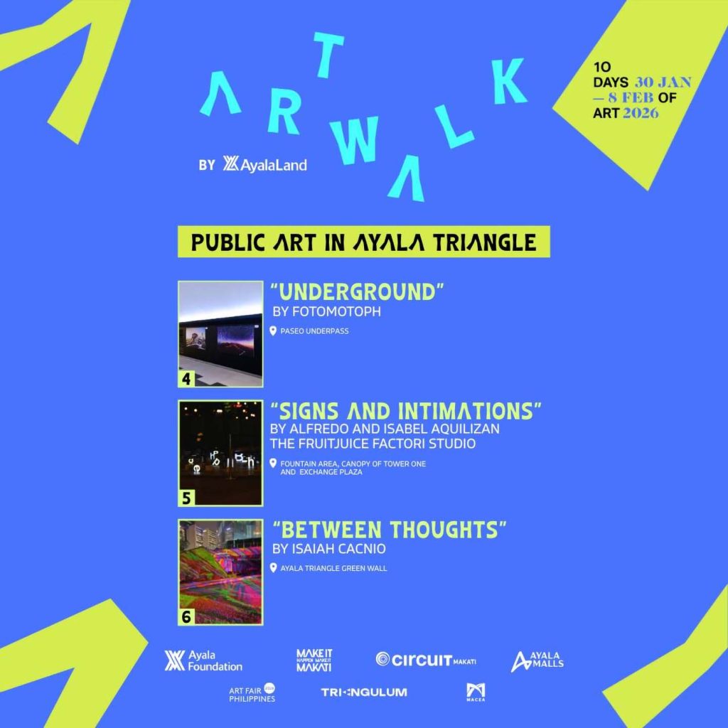 Art Walk by Ayala Land transforms Makati into a city-wide canvas through 10 Days of Art across key landmarks — from Ayala Triangle Gardens and the Paseo Underpass to One Ayala, Glorietta, Greenbelt, Ayala Museum, and all the way to Circuit Makati.
