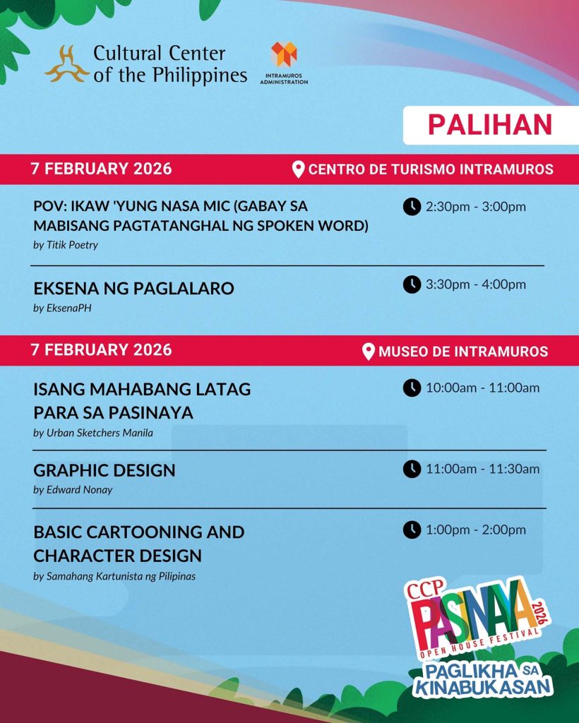 Pasinaya 2026 takes over Intramuros with a full weekend of creativity, learning, and performance through its Palihan (workshops) and Palabas (performances) across multiple heritage sites. As the country’s largest arts festival, Pasinaya brings together artists, audiences, and cultural workers for an immersive, city-wide celebration of Philippine arts. It will happen on February 7 to 8 in Intramuros, Manila.