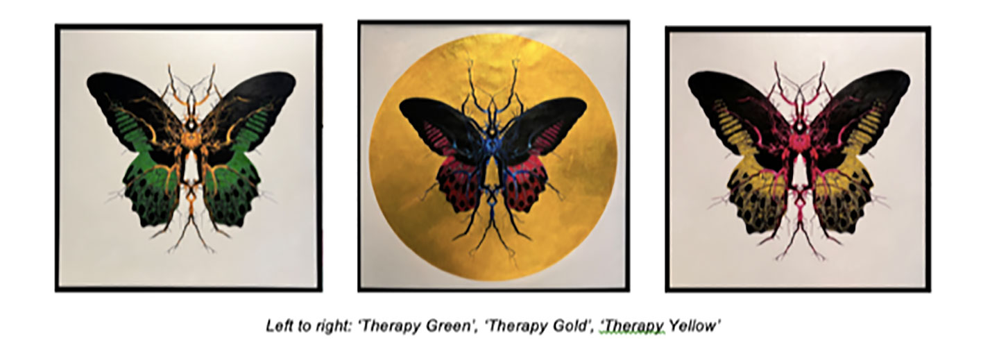 Maxim also looks to nature and the inner workings of the human mind as influences for his art, with a series of exquisite paintings (Therapy Green, Therapy Gold, and Therapy Yellow) inspired by the Rorschach Test, a process where ink blot drawings of psychoanalysis subjects are psychologically analyzed. The butterfly is a recurring motif in Maxim’s artistic oeuvre, while the Miart London exhibition will also feature more tongue-in-cheek works such as Rebel with the Paw, sculptures of gun-toting felines on their hind legs, a surreal metaphor for society’s rebels who spread positivity by shooting rays of love.
