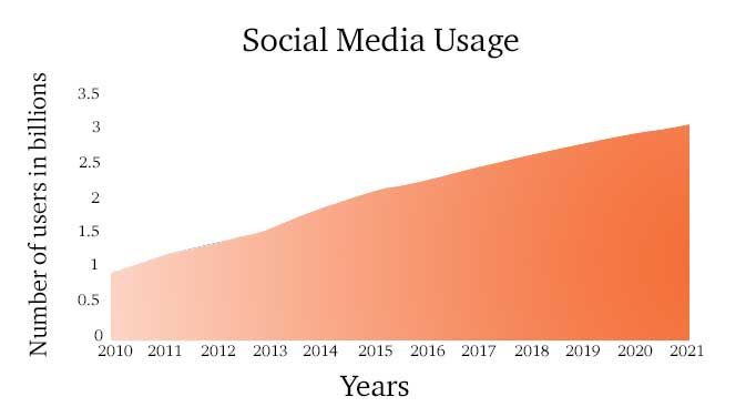 The past decade has shown incredible growth in global social media usage. In 2010, we saw just one billion people using social sites, which has since grown to 2.82 billion in 2019, projected again to increase to 3.09 billion people by 2021.