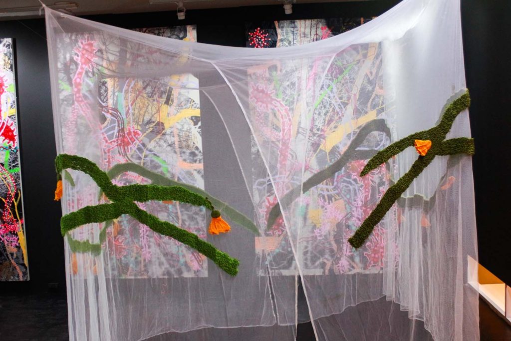 At Silverlens Gallery, Isa Lorenzo delivers one of the fair’s most compelling curations. Anchored by a monumental tapestry by Pacita Abad, the booth unfolds into a Baguio-themed section that weaves memory, place, and materiality into a cohesive spatial narrative.