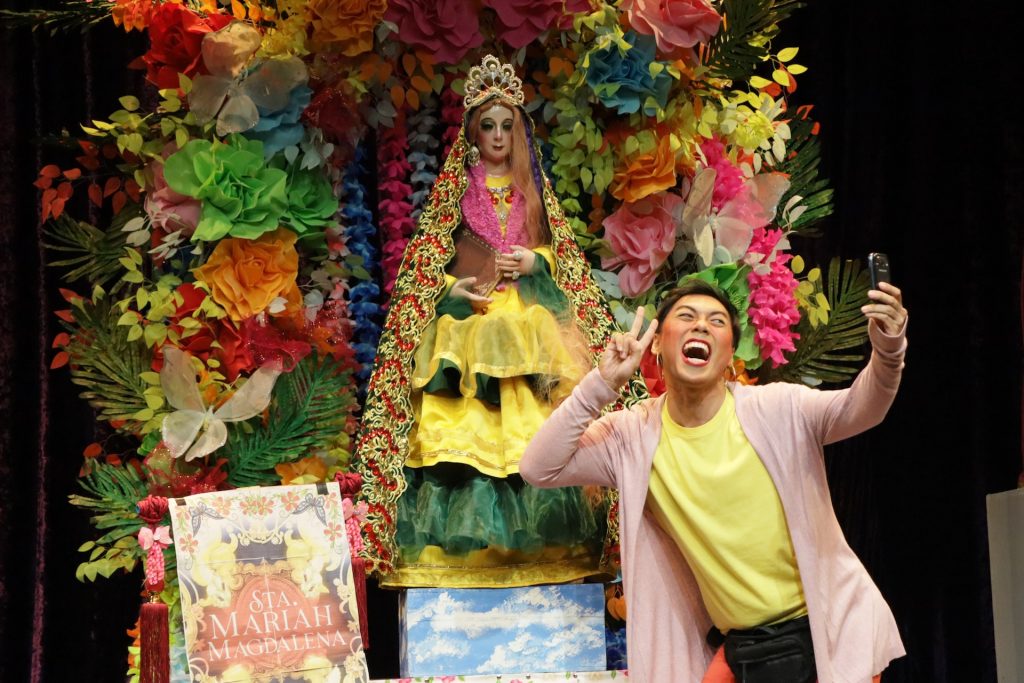 The evening will open with Minating ni Mariah ang Manto ng Mommy ni Mama Mary by Eljay Castro Deldoc, a one act play where former con artist Mariah seeks redemption by participating in an annual Lenten Exhibit only to face accusations of stealing the antique veil of St. Mary Magdalene.