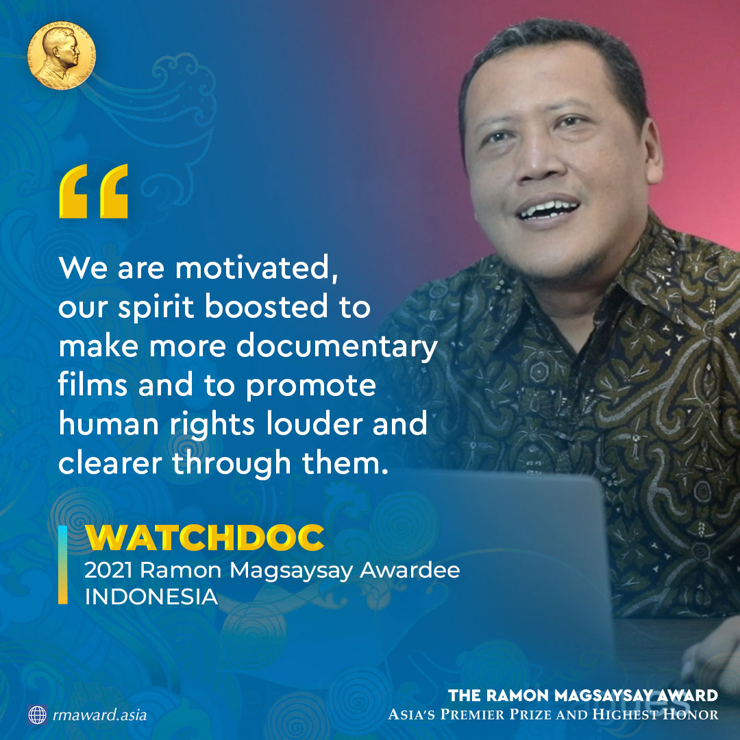 The 2021 Awardees are Roberto “Ka Dodoy” Ballon, a fisherman and community environmentalist from Southern Philippines; Steven Muncy, a humanitarian and peacebuilder working all over Southeast Asia; Muhammad Amjad Saqib, a poverty alleviation visionary from Pakistan; Firdausi Qadri, an affordable vaccine champion from Bangladesh; and WatchDoc, media truth crusaders from Indonesia.