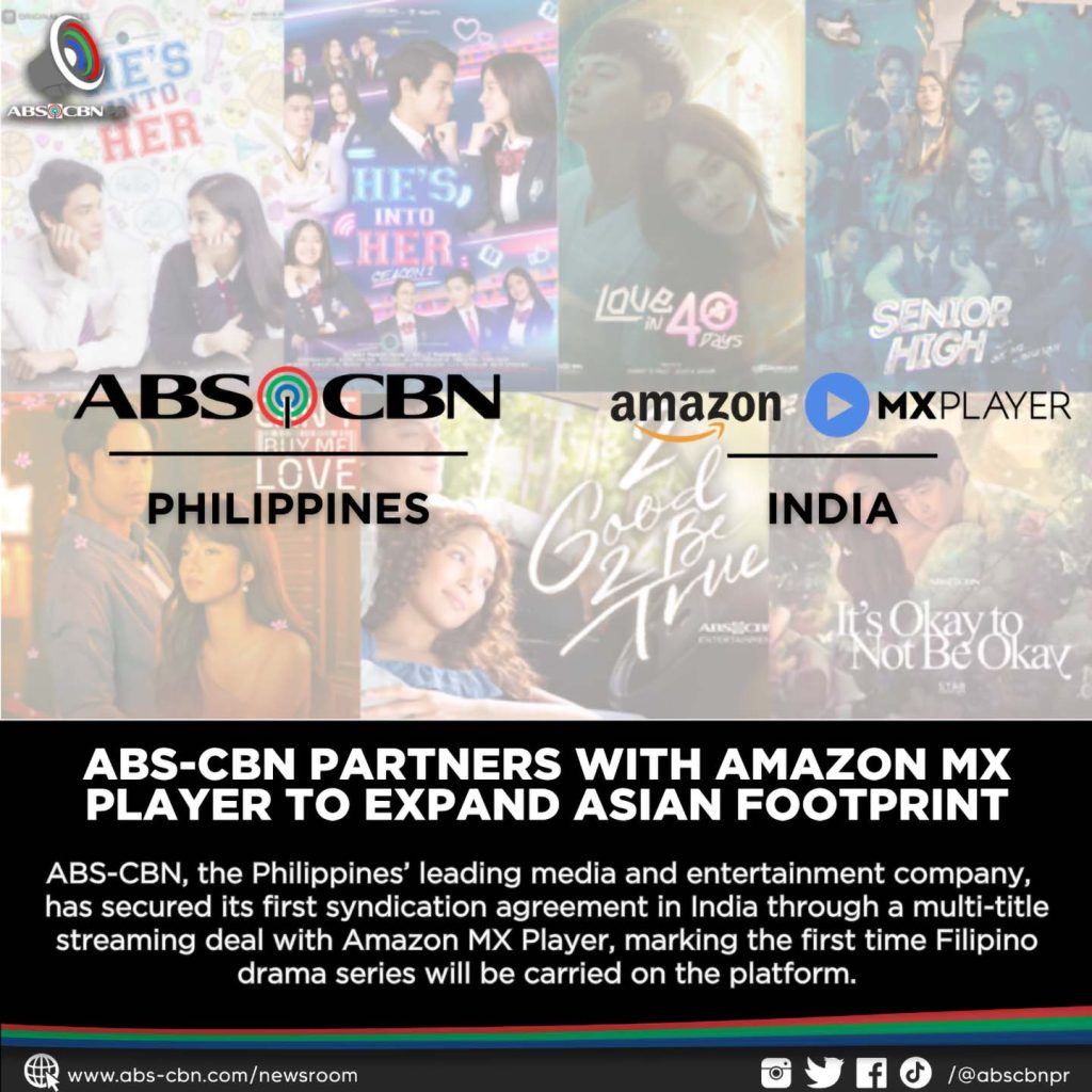 MANILA, PHILIPPINES – ABS-CBN, the Philippines’ leading media and entertainment company, has secured its first syndication agreement in India through a multi-title streaming deal with Amazon MX Player, marking the first time Filipino drama series will be carried on the platform.
