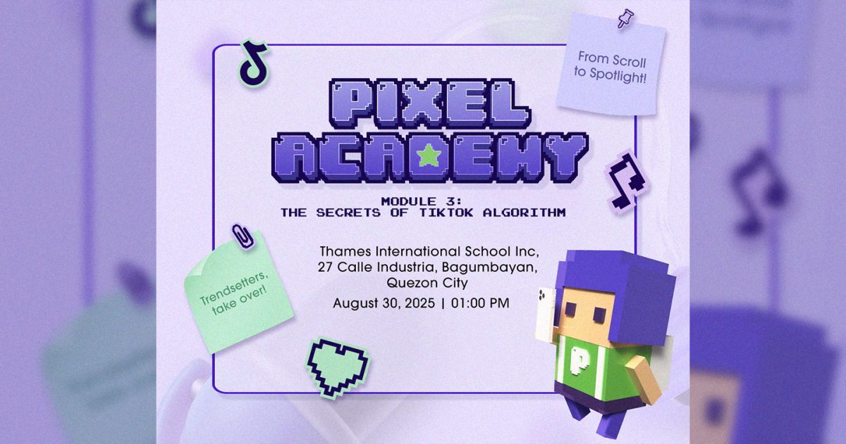 The final session of PIXEL Academy, The Secrets of TikTok Algorithm, will be held on August 30, 2025, at Thames International School, Inc. The workshop will be led by Daniella Roi, a beauty, lifestyle, and tech content creator who began her journey on TikTok. Known for her humor, relatable skits, and witty commentary, Roi will share her personal story of building an engaged audience while navigating the ever-changing algorithm.