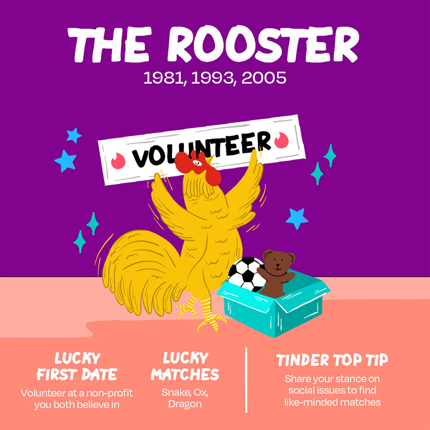 ROOSTER – Known for your fierce independence, it’s no surprise that you find yourself gravitating towards personal development this year. But that doesn’t mean you have to put your love life on the sidelines – dating is an amazing way to (re-)discover yourself and work on your relational skills!