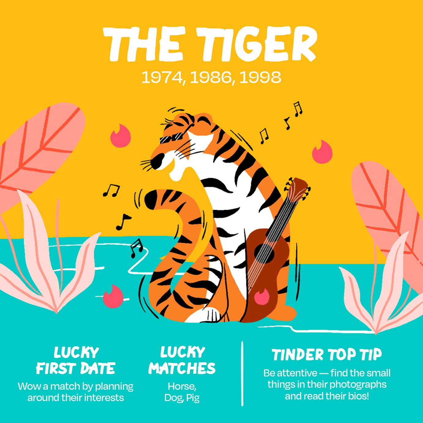 TIGER – You may find this year a tad challenging when it comes to your Love Luck but practicing radical kindness on your partner or new match with simple, meaningful gestures will go a long way in squashing the bad qi (or energy).