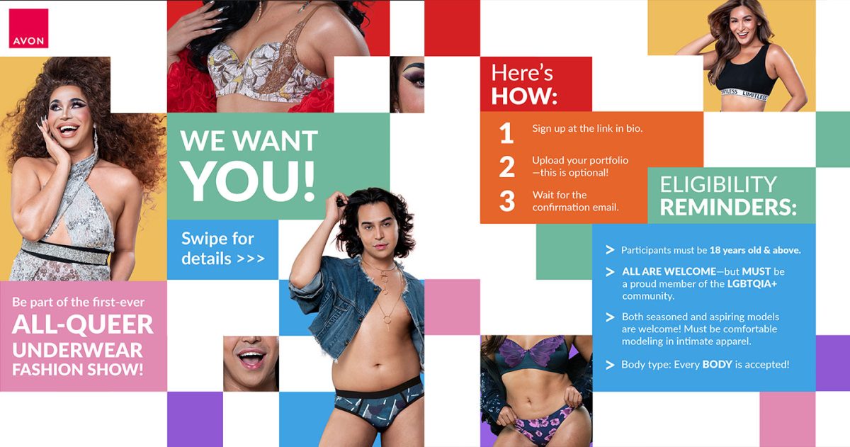 MANILA, PHILIPPINES — Pride has been a long-standing tradition for the community and its allies to celebrate the importance of identity and self-expression. It has also become a space for its members to call for more support for the LGBTQIA+ community from outside and within. As a brand that has constantly challenged stereotypes for over 135 years, Avon’s work to promote positive representation continues for this year’s Pride celebration. As a true champion of self-expression, Avon will be hosting the country’s first all-queer fashion show featuring its Flexicomfort Intimate Apparel line. The brand will be showcasing new products in its line that fit a range of bodies with better coverage and bigger sizes that stretch to support and give confidence to every body and everybody.