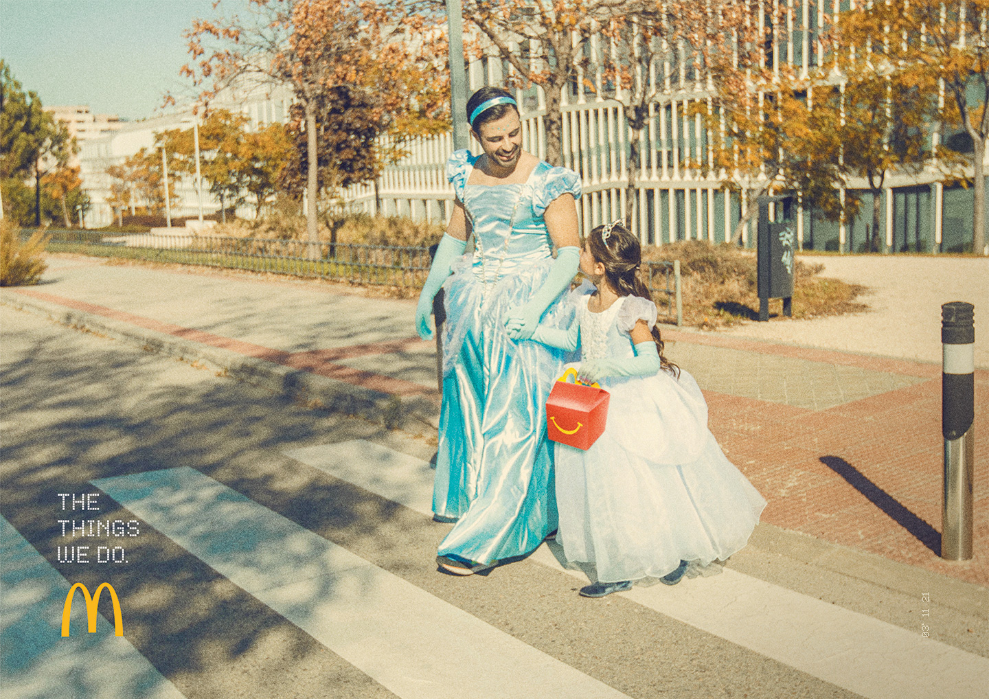 Along with the campaign tagline found on each image, “The Things We Do,” the photos succinctly portray the joy and devotion that fathers give to their children. It successfully paints a simple but telling picture of dads who will do anything to create happy moments for their kids, even if it involves wearing a princess gown as you walk down the streets for a McDonald’s run.