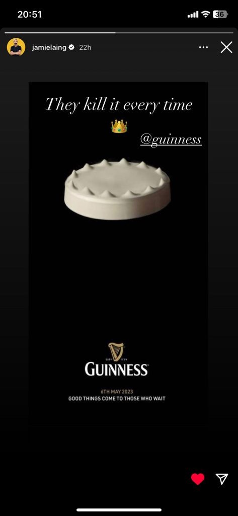 While Diageo or Guinness hasn’t commented on the viral ad, Anthony added, “It reinforces the importance of brand building and having a consistent brand platform that has been built over decades, that this would even be possible. The ‘Good things come to those who wait’ line is synonymous with Guinness and was perfect for this purpose given the time King Charles has waited for the crown.”