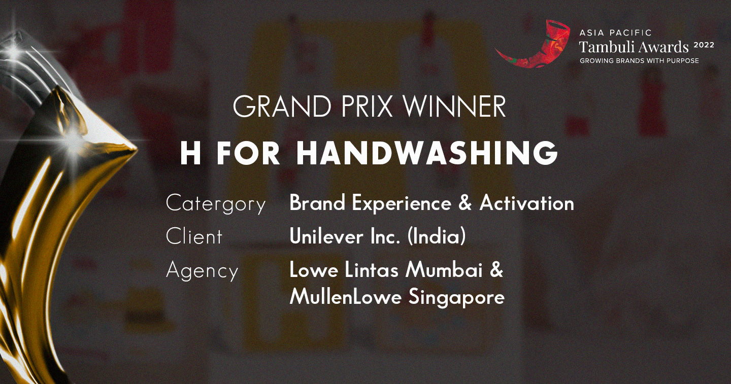 Lowe Lintas Mumbai + MullenLowe Singapore bagged Grand Prix for their campaign “H is for Handwashing” for Unilever Lifebuoy.