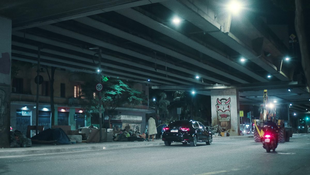 The open-air projection kicked off at a crucial point for the city, as fall temperatures begin dropping in São Paulo and the chill can lead to hypothermia and even death for the unhoused. Throughout the Minhocão initiative, the NGO has stationed volunteers along the part of the overpass reserved for pedestrians so that they can share a bit more of the subjects’ stories and let people know about SP Invisível’s work. The project also aims to boost donations to the organization.