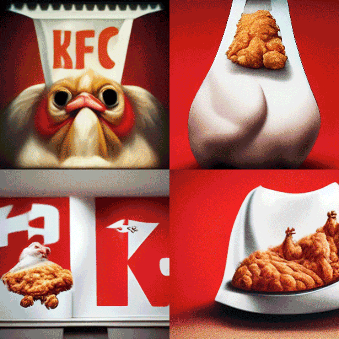 The ads cover a spectrum of visual identities, spanning retro, cinematic, noir, and even cartoon styles. The images often feature familiar shapes, like the plane wing of a British Airways plane, or the signature nugget of KFC chicken; just as often, however, the shapes are unrecognizable computer imaginings that make the images surreal and wonderful, ranging from bright, kitsch colors to sci-fi, Dali-esque nightmares.