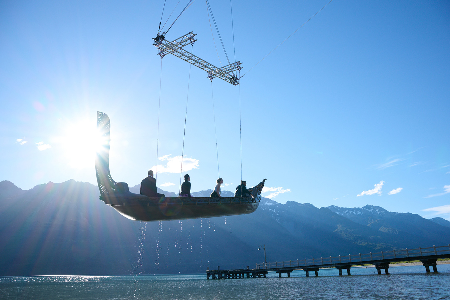The airline worked closely with the New Zealand Māori Arts and Crafts Institute to design the waka and its carvings. From there it was taken to the various filming locations and flown on wires to create real shadows and textures for post-production.