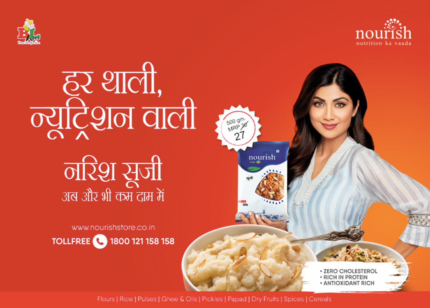NOIDA, INDIA — Nourish, a food products company under the aegis of BL Agro, has recently launched a campaign #HarThaliNutritionWali, an initiative to promote better nutritional access to the people of the country. The campaign is recently launched across social media and through multiple hoardings across North India. The company’s brand ambassador and Bollywood diva Shilpa Shetty is seen on social media and on outdoor hoardings promoting the value of eating good and nutritional food, highlighting the goodness of Nourish.