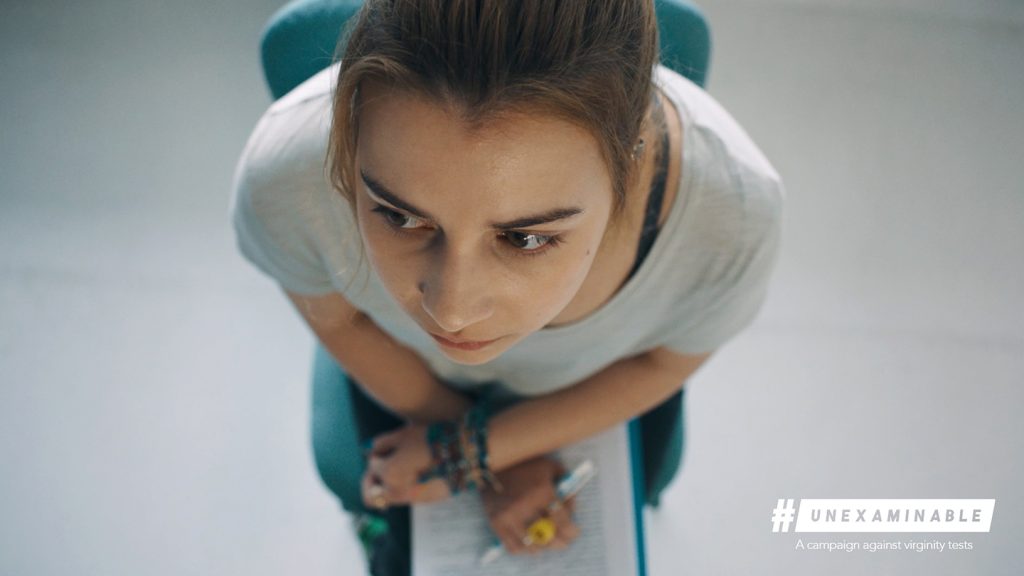 “I am always touched by any form of violence against women. When I was asked to contribute to the #UnExaminable campaign, I saw it as an opportunity to make a change. The first step towards making a change is to speak openly about a problem, instead of sweeping it all under rug, as well as to sanction any form of abuse. If you don’t know anything about it, it doesn’t mean it is not real. I believe it is crucial for people to know that such ‘testing’ still occurs in Romania in 2022, and that they are incredibly traumatizing for teenage girls and their sole purpose is to further preposterous bias about what a woman should do with her own body,” said Iulia Rugină, director of the campaign video.