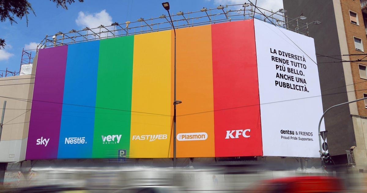MILAN, ITALY – Dentsu Italy and 10 clients (Sky, Nestlé, Very Mobile, Fastweb, Plasmon, KFC, Engie, Pringles, WindTre, Heinz) celebrate Pride with a rainbow creativity: an advertising campaign launched on newspapers and out of home, scheduled for the last two weeks of June.