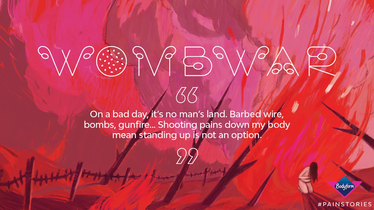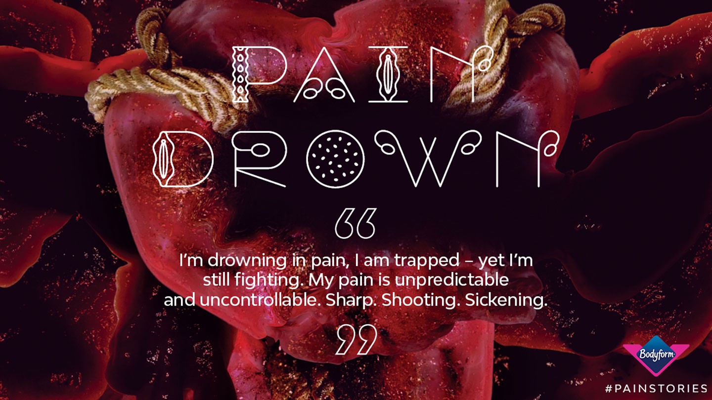 Libresse has created The Pain Dictionary, using real descriptions of pain from people with endometriosis. The dictionary includes new words and definitions which have been visualised by artists and creators, whose powerful illustrations bring the definitions to life, resulting in a new verbal and visual language for endometriosis pain. Contributors include illustrator Venus Libido, and textile artist Ellie Pearce, both of whom suffer from endometriosis.