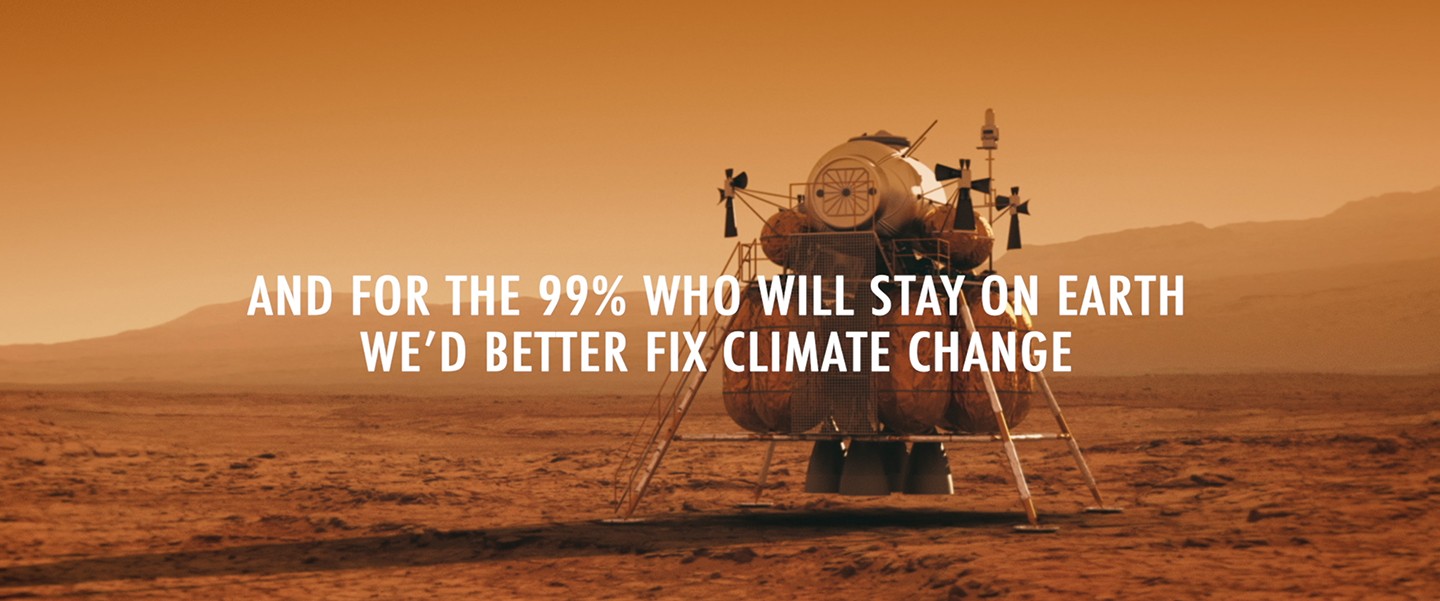 A film created by FRED & FARID Los Angeles for Fridays For Future, Greta Thunberg’s global climate change movement, illuminates the irony of the fact that government-funded space programs and the world’s ultra-wealthy 1% are laser-focused on Mars… and yet, 99% of humans will never get to Mars. 99% of humans will have to stay on Earth.