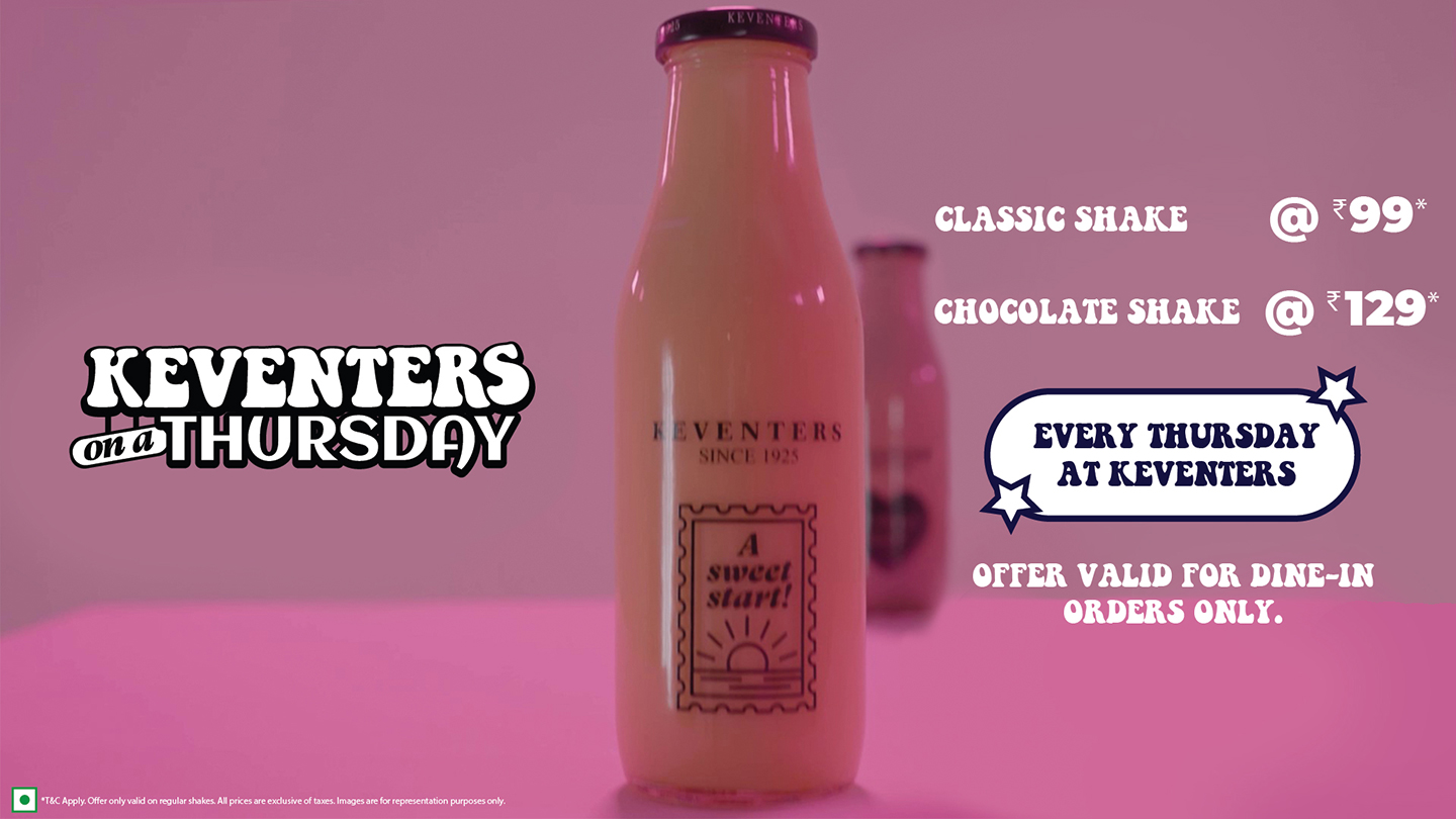 NEW DELHI, INDIA — Keventers is an iconic Indian Dairy brand with a legacy of 96 years best known for its Milkshakes & Icecreams. It is one of India’s few successful dessert brands, which over the years, has introduced unique and fun consumer-engaging marketing strategies that have ultimately positioned the brand as a favorite amongst the millennials and Gen Z. Following the success of The Bottle Design Campaign, which targeted the young design community in India, Keventers is back again with an all-new campaign named K.O.A.T i.e., Keventers on a Thursday which targets Gen Z. The Pan India campaign started from July 28 and includes the launch of KOAT music video which will be a visual treat for the audience alongside running fun offers where one can avail Classic Shakes at Rs. 99 and Chocolate Shakes at Rs. 129 every Thursday at Keventers.