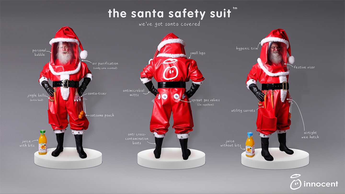 Anna Clare, Head of Digital at innocent said “We already make smoothies so Santa Safety Suits were the next obvious move. Great to be able to add ‘saving Christmas’ to our list of achievements this year.”