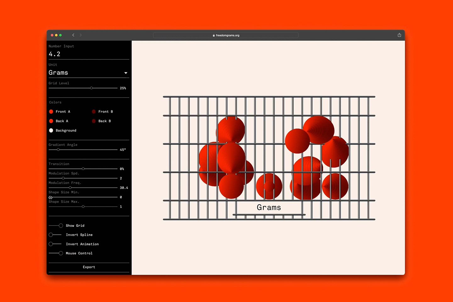 Freedom Grams is an initiative by AROYA in partnership with Last Prisoner Project and GABY Inc., idea and execution by Serviceplan Group, together with design studio Moby Digg, type designer Michael Clasen, and creative coder Daniel Kuhnlein.