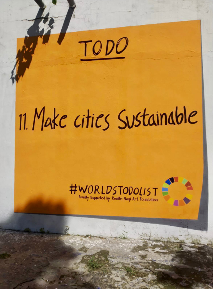 Giant sticky notes will also appear as a large-scale art project throughout India with the Rouble Nagi Art Foundation, painting murals across villages in five states while working with local communities to educate and support the issues raised by the Goals.