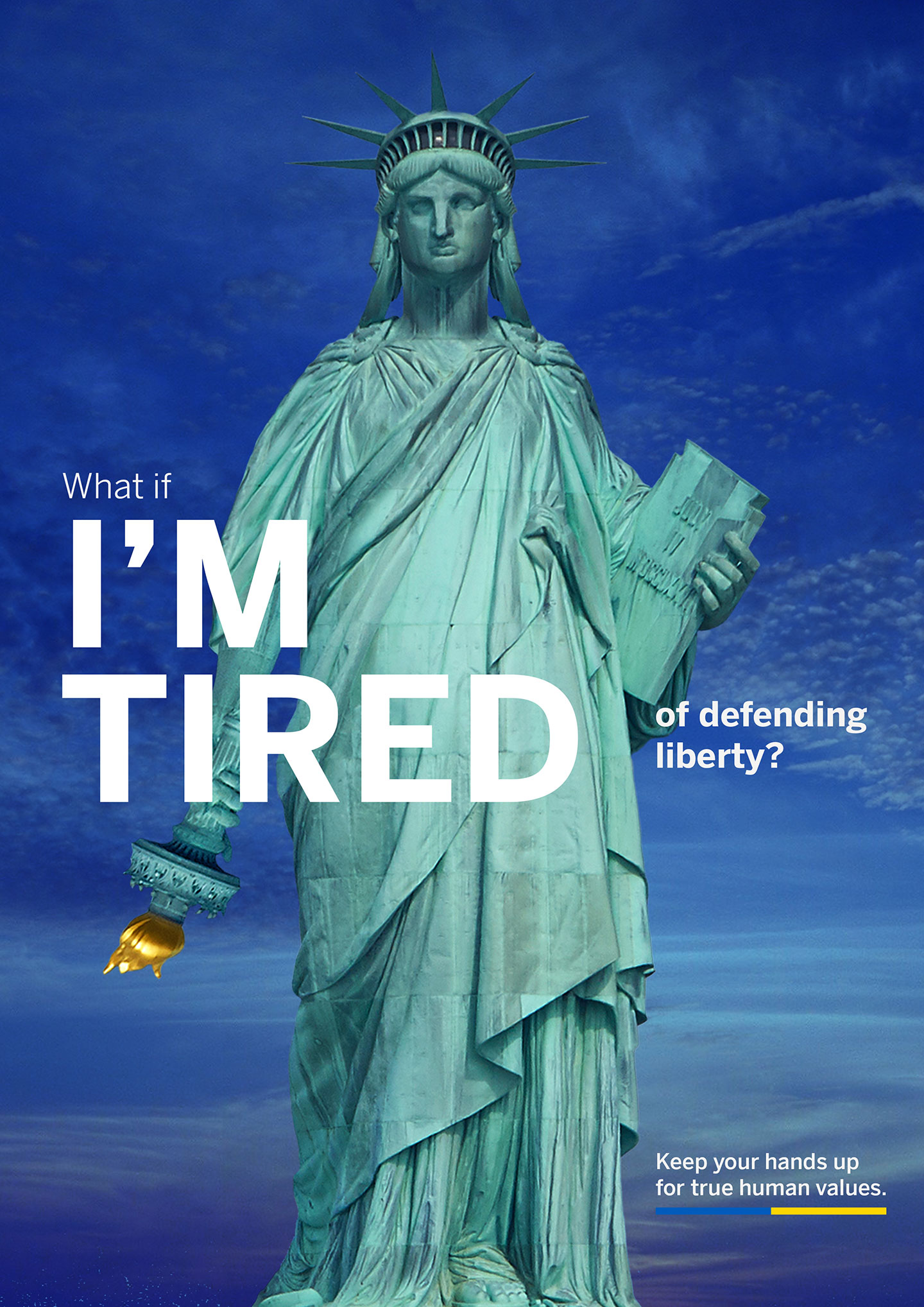 “What if?” is the rhetorical question that Leo Burnett Ukraine asks the world today, but the answer is up to everyone. While all the icons in the campaign visuals are depicted as tired with their hands down, the campaign encourages the audience: “Keep your hands up to stand for true human values!”