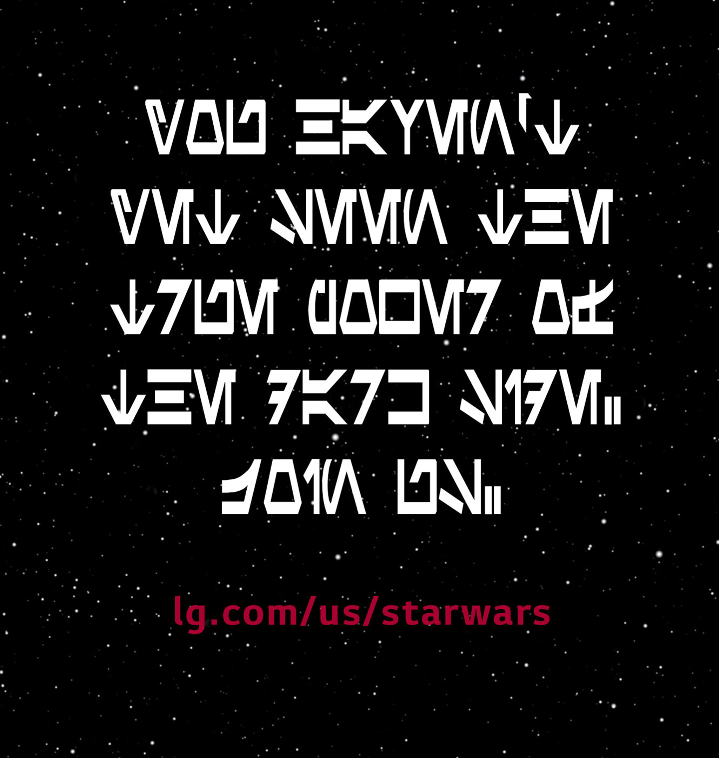 The message when translated reads…“You haven’t yet seen the true power of the dark side. Join us. lg.com/us/starwars.”