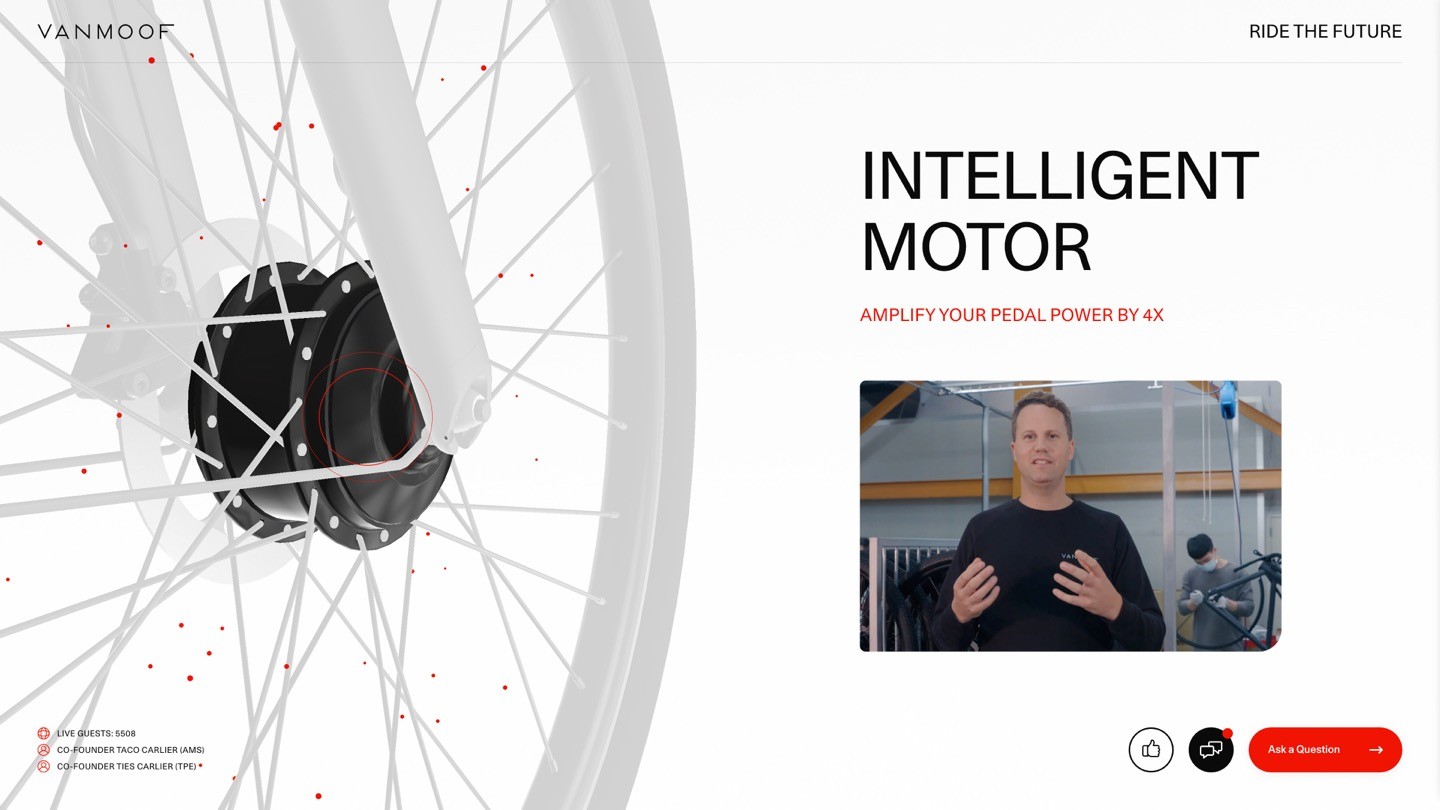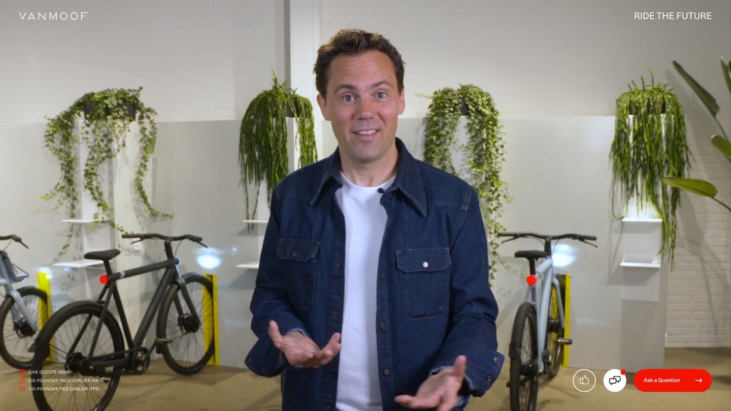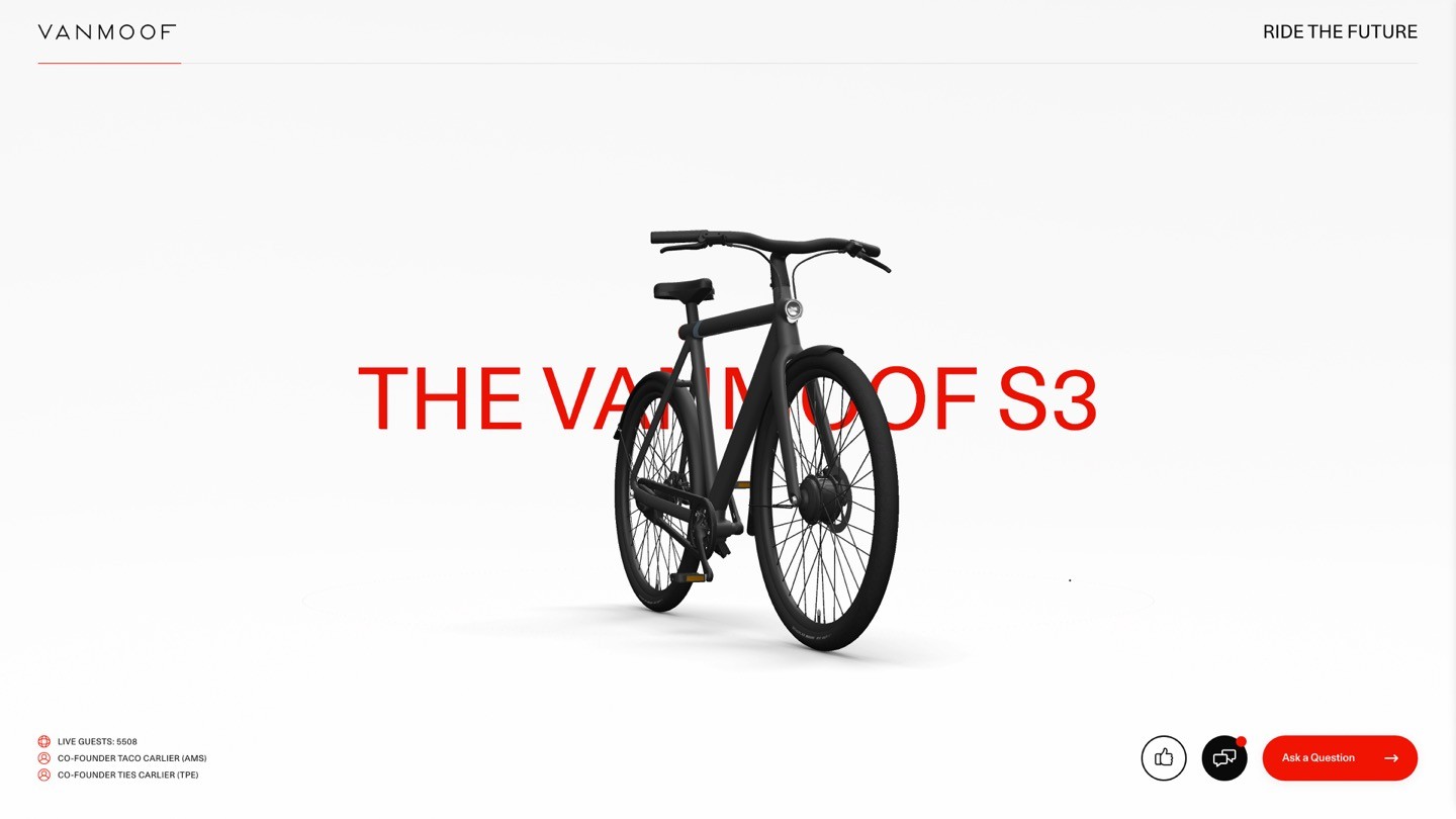 Fans could react, chat with each other and ask questions with the click of a button – answers to some of the 2000 questions that came were answered in a live Q&A session with the two founders. The democratic nature of the event used tech to bring unlimited numbers of fans closer to the new product and its makers, than ever before – and interact directly with the founders of VanMoof.