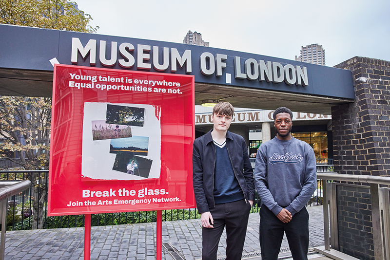 A giant ‘Break in Case of Arts Emergency’ case has been built to display examples of creative work from Arts Emergency’s young people, Jannell Adufo, Maïs Bouteldja, Helen Hale, Gwent Odai, and Sam Oddie, showcasing some of the incredible raw talents which are at risk of being excluded from the arts. The box launched at the Museum of London yesterday before arriving at National Museums Liverpool.