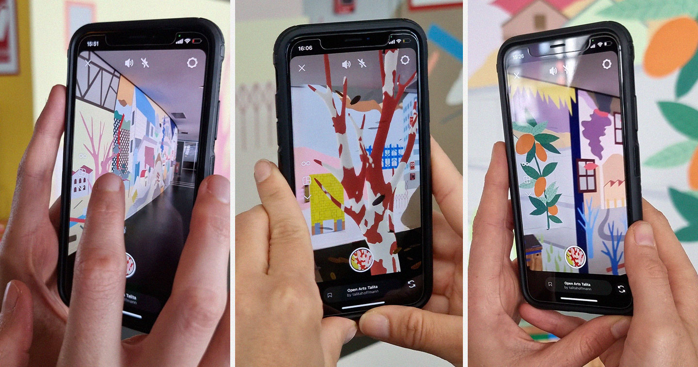 Spark SDK helped us prototype and find a playful way to interact with the project. We created a rough draft as a working experience and then we played around with it, working on the details and polishing the effect. After creating the first version, we started iterating and adding more layers of content on top of that. We combined 2D and 3D animation, which brought a playfulness to the experience. AR art allows us to give life to a picture or an image, so we can create bigger space, add storytelling to the artist’s vision and create a new story around that.”